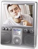 Now you can bring your entire music collection and audio library into the shower! This radio can also play your iPod and MP3 Player. The built in stereo speaker system has excellent sound quality that you can hear over your shower bath or bathroom fan. It also features an oversized fog free mirror a light for the mirror with 2 LED white lights and a water resistant compartment. Hanging strap slips over shower head. Works with 3rd and 4th generation iPods (not video iPods or later models or iPod minis or iPod shuffles). Assembly level/degree of difficulty: No Assembly Required.
