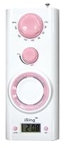 Ising FM Shower Radio has a digital clock. It is water resistant with removable suction cups and a foldout stand. Compact sleek design for a desk night stand or outdoors.